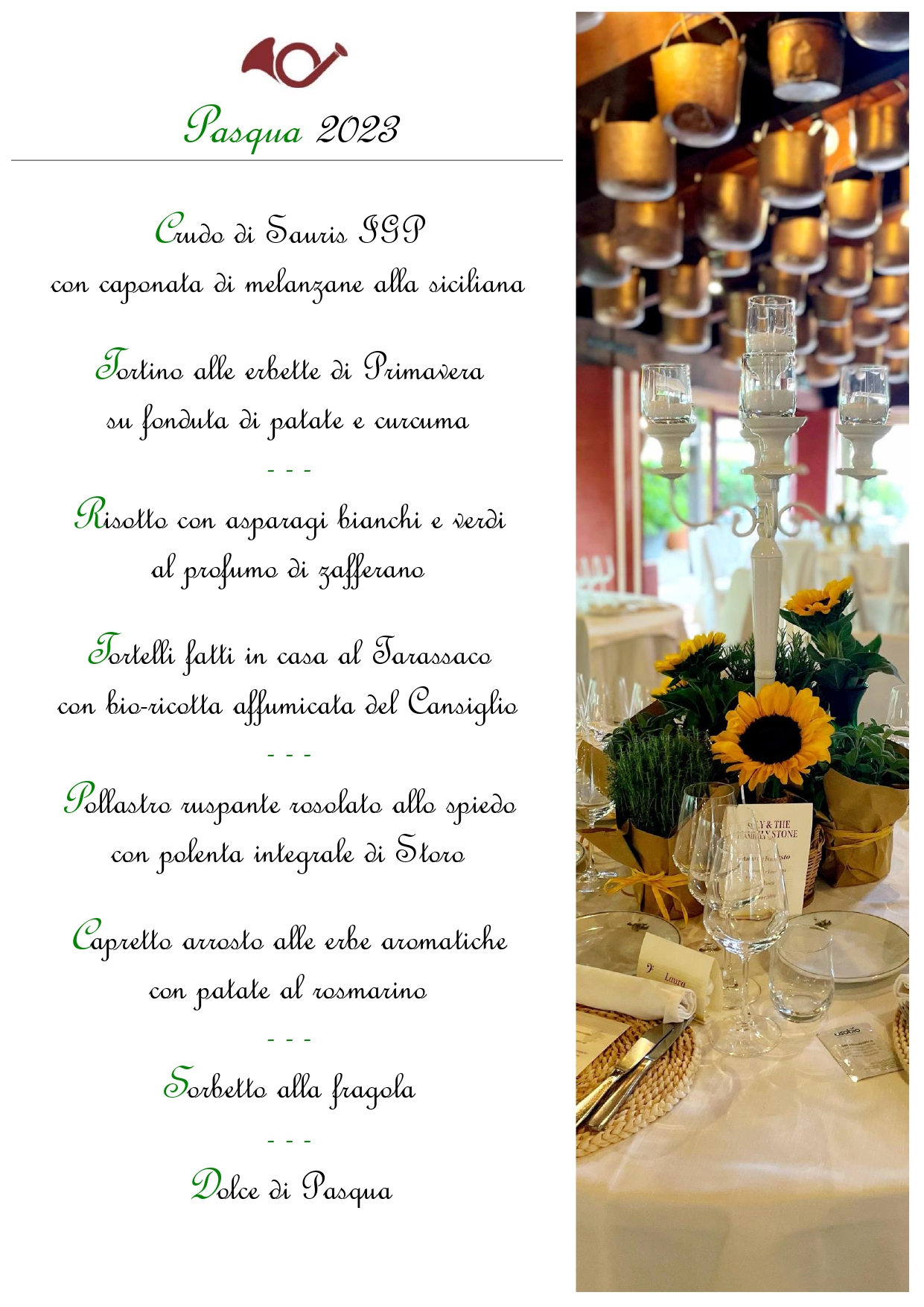 Marzo 3, 2023 by locanda_master Pasqua 2023 La Pasqua in Locanda con i nostri piatti della tradizione! Lasciatevi avvolgere dai profumi e dai sapori di una cucina autentica e gustosa. Info e prenotazioni allo 0438 82150 Prezzo di 68 euro a persona vini esclusi News ed Eventi PasquaMenucollineproseccoeventi